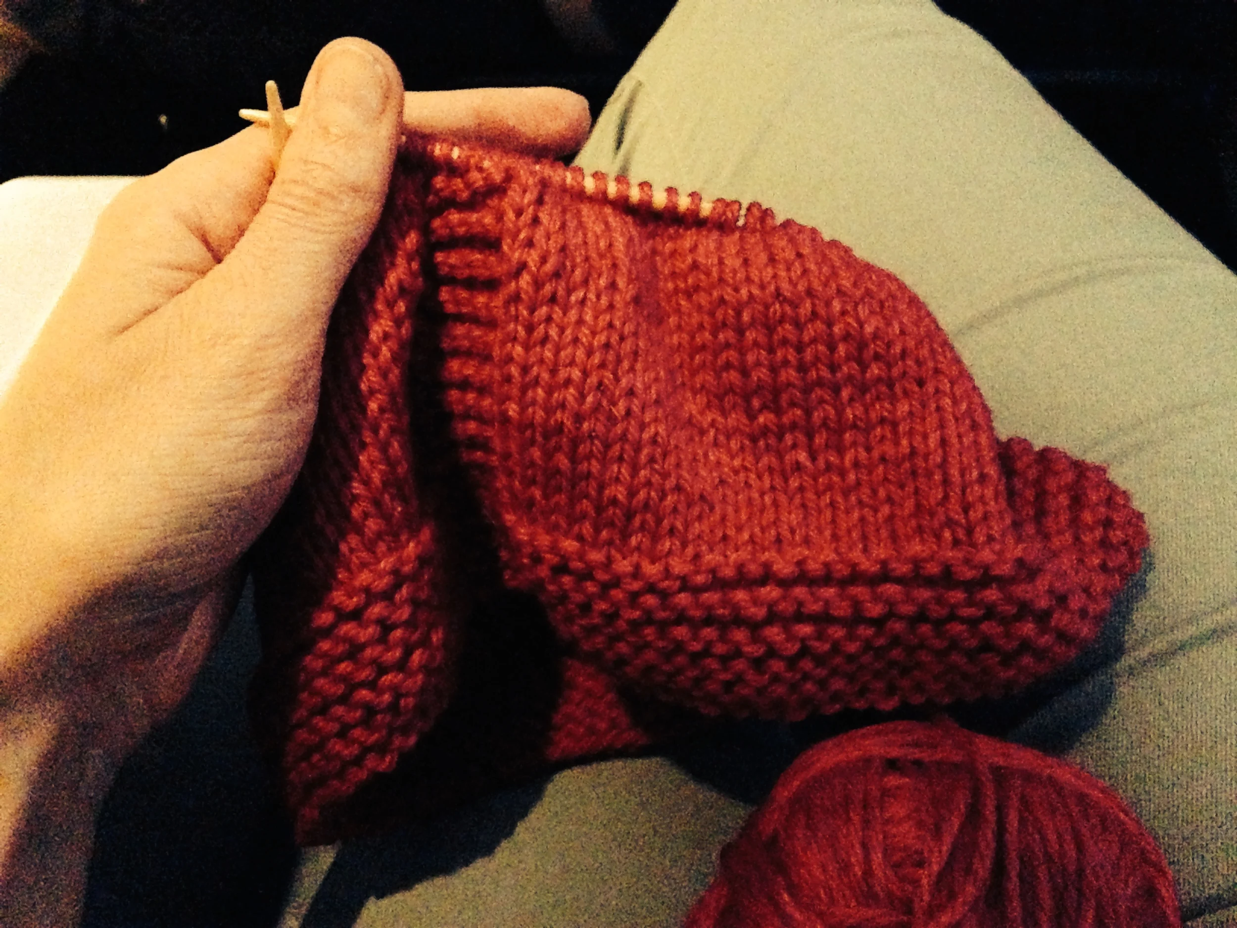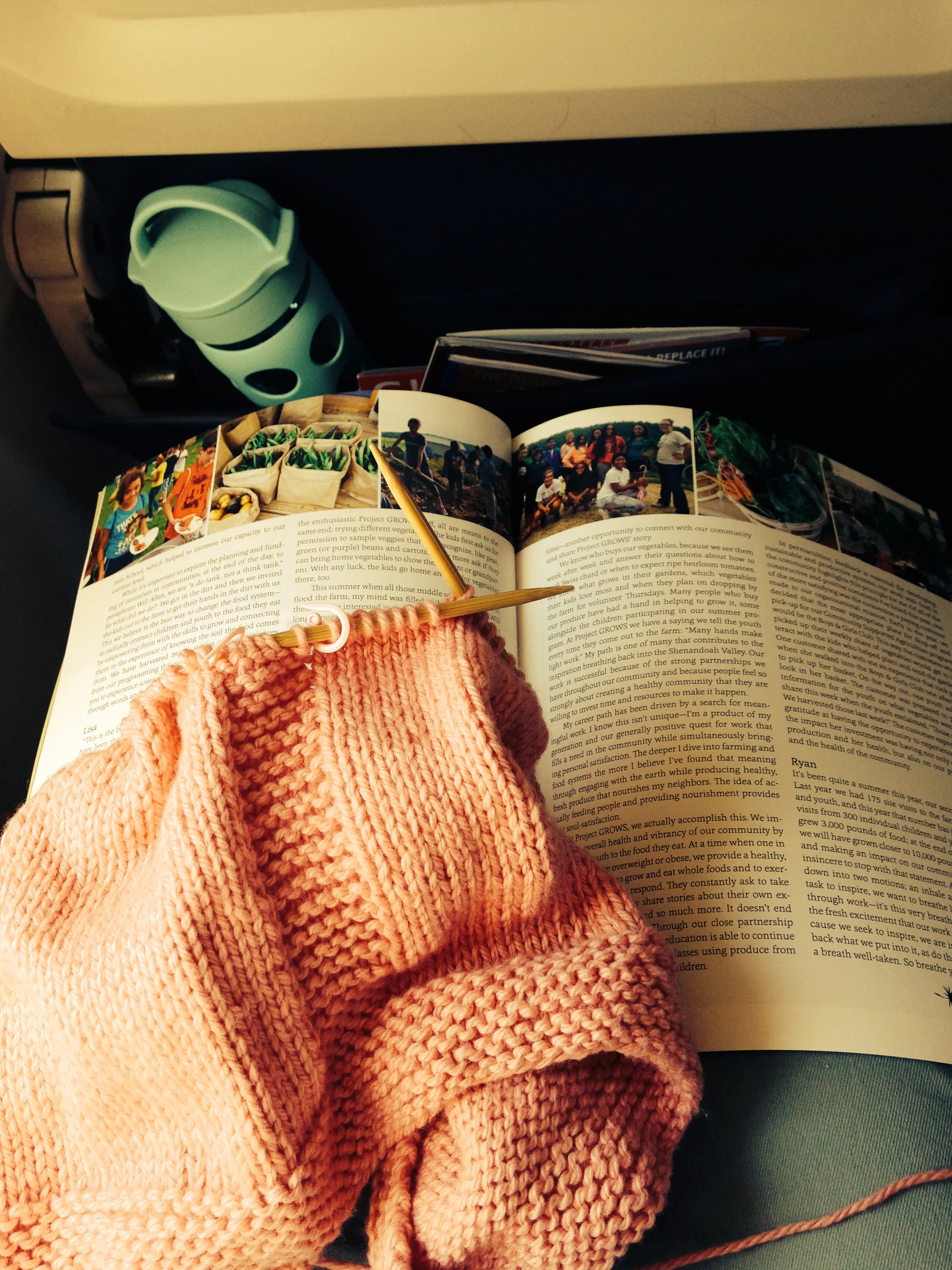 The second vest was cast-on during another airplane ride (I guess my blue pants are my go-to airplane attire…). This plane, rather, was headed to the West Coast. After those two long flights, I had another vest mostly finished.