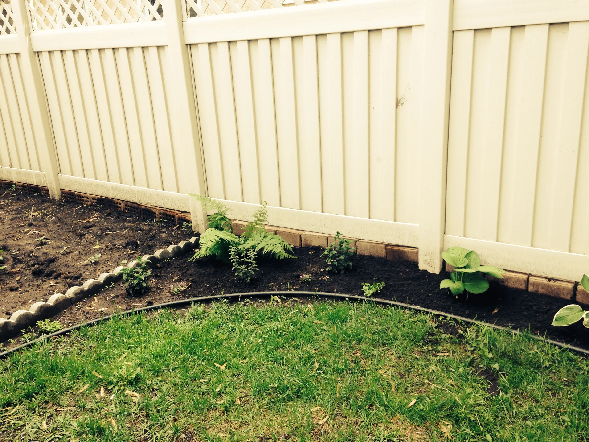 Last week I showed you my dear vegetable garden and flower bed that are on the side of my house.  This, however, is my new little perennial bed and I’m so very excited about it!  In the middle of it, you will find my new chokeberry bush.  It has white flowers in the spring, black fruit in the summer, and vibrant colors in the fall.  I love shrubs that have multiple traits to show off, and this one seems to be a winner!