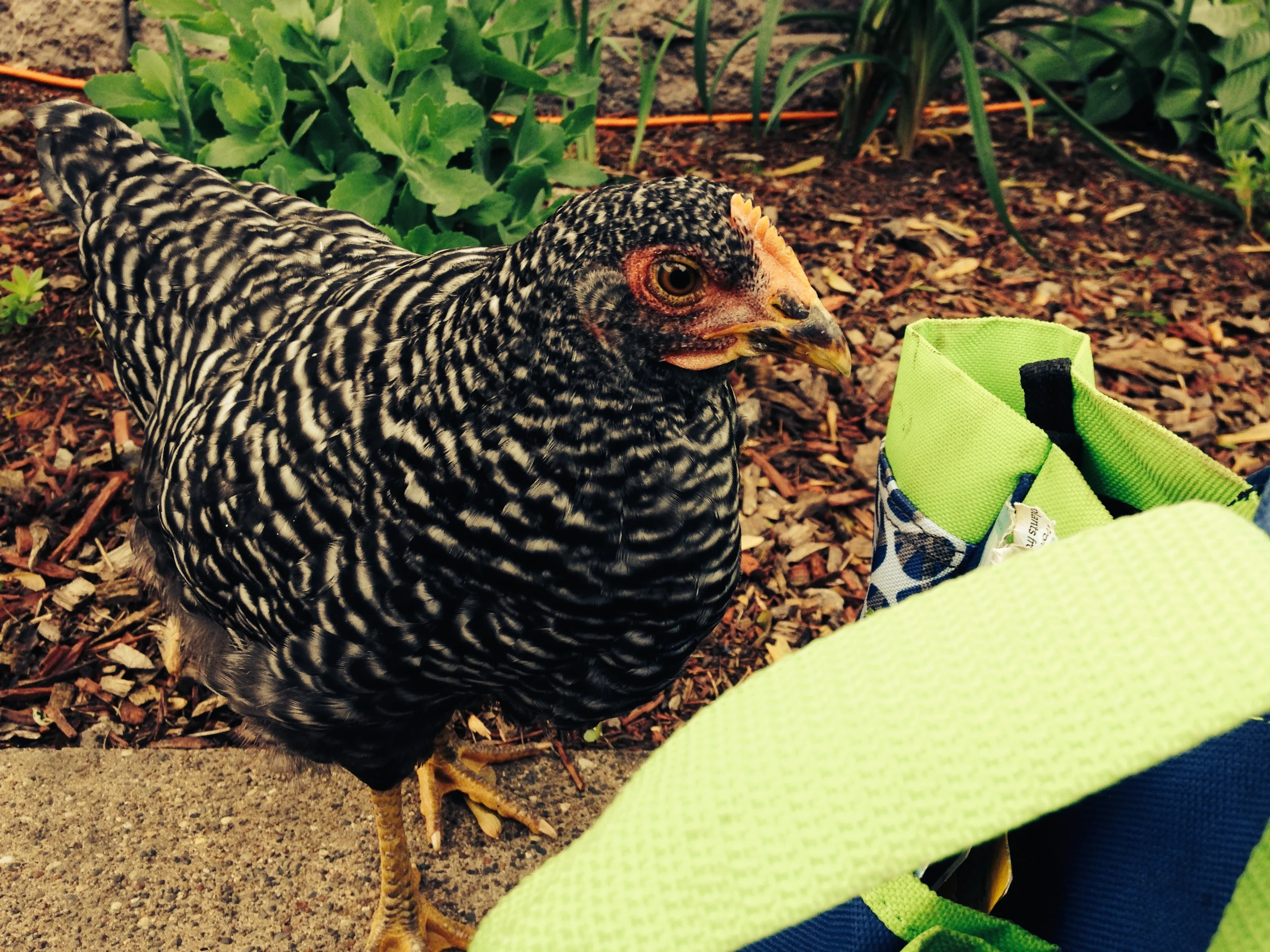 The chickens have become very fond of their outside home and yard…sometimes a bit too fond of the yard part of that combo…I officially have a couple of trouble makers on my hands, namely Henrietta and Birdie. They are partners in crime. Henrietta is super cute and sweet about it–just always curious about what’s going on and wanting to be involved. In the process, she gets into trouble. Birdie, on the other hand, can usually be found running around my yard and garden boldly smashing and eating my precious plants. There has been a lot more chicken chasing happening around here as of late.