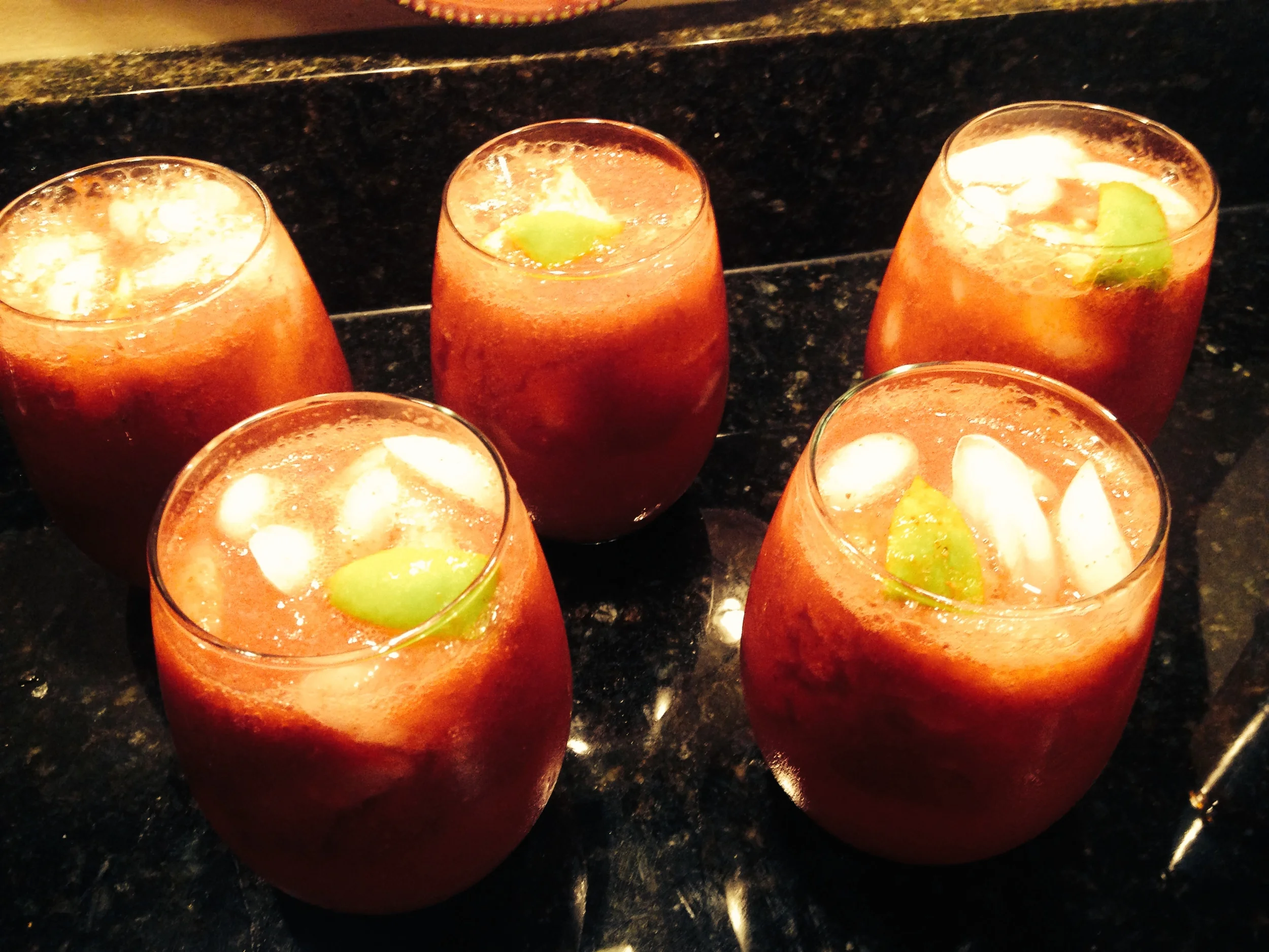 Blend the strawberries, mint leaves, and honey in a blender until smooth. When ready to serve, pour the strawberry puree over ice (I filled the glass about halfway), add an ounce or two of liquor, top with club soda, drop in a squeezed wedge or two of lime, stir, and drink in the sunshine! Yum!!