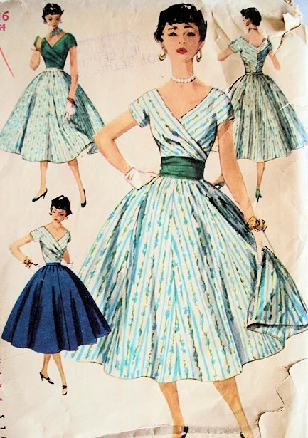 I found a picture of a vintage dress pattern, that I absolutely adored and a few pictures of wedding dresses that had a similar feel and I used them all as inspiration for my design. (The sources for these images are long forgotten. My apologies!) I was able to use the picture of the back of the vintage dress pattern to give me an idea for the amount of fabric I would eventually need.