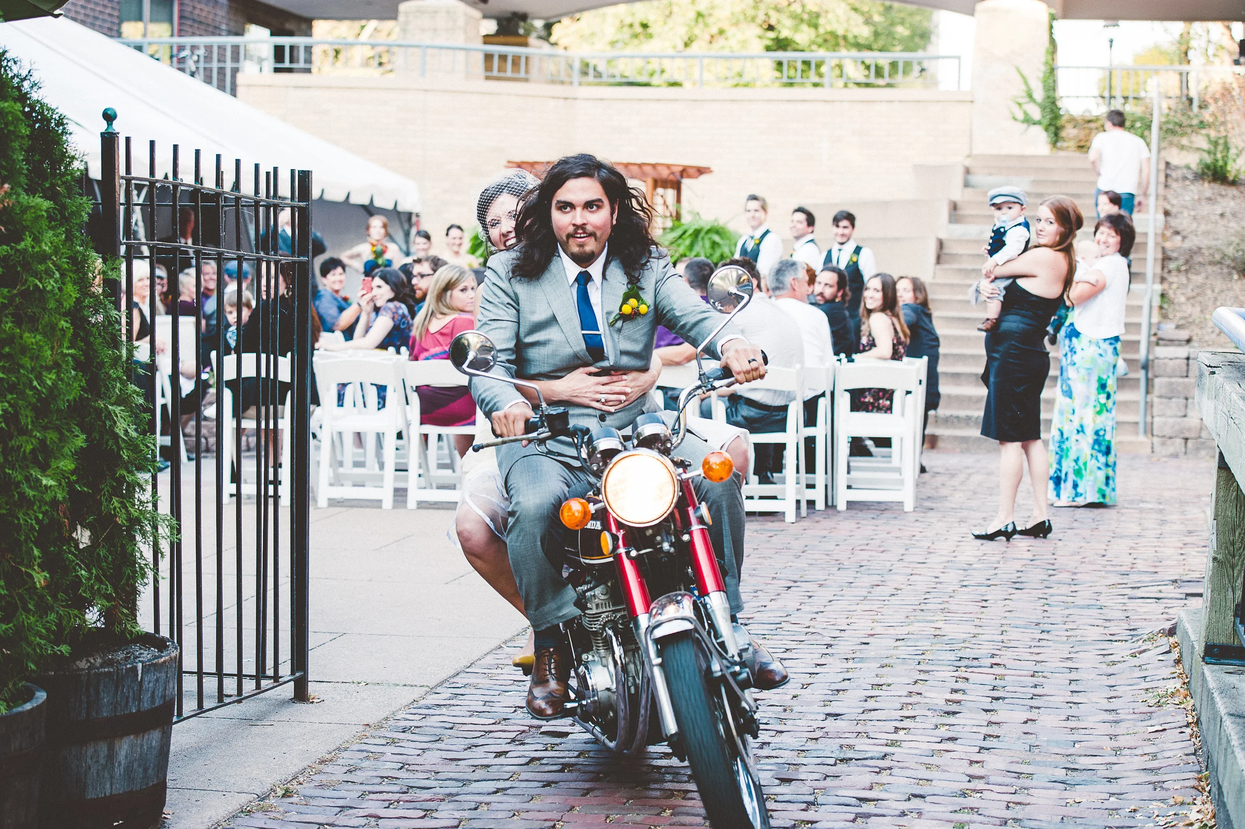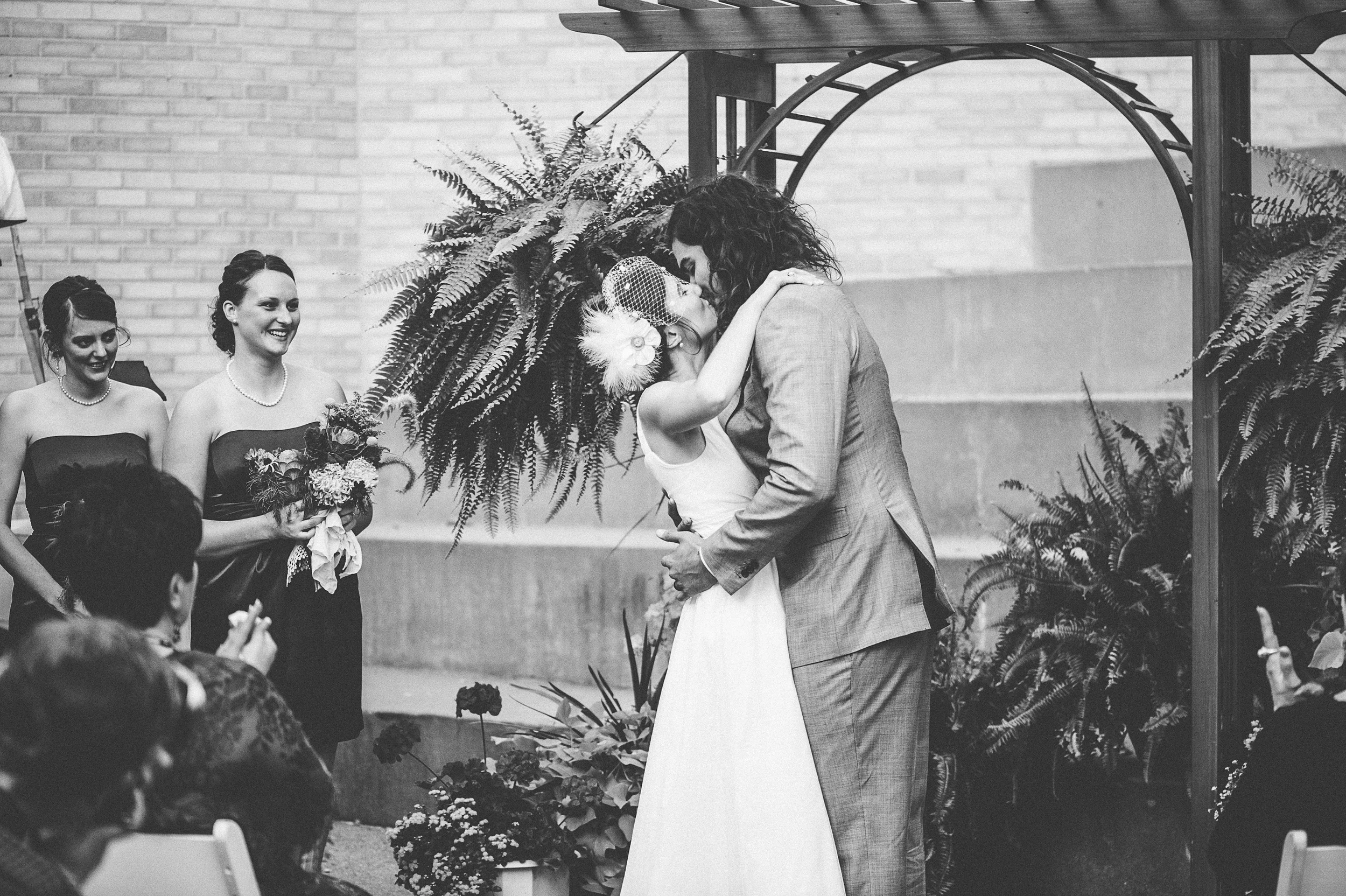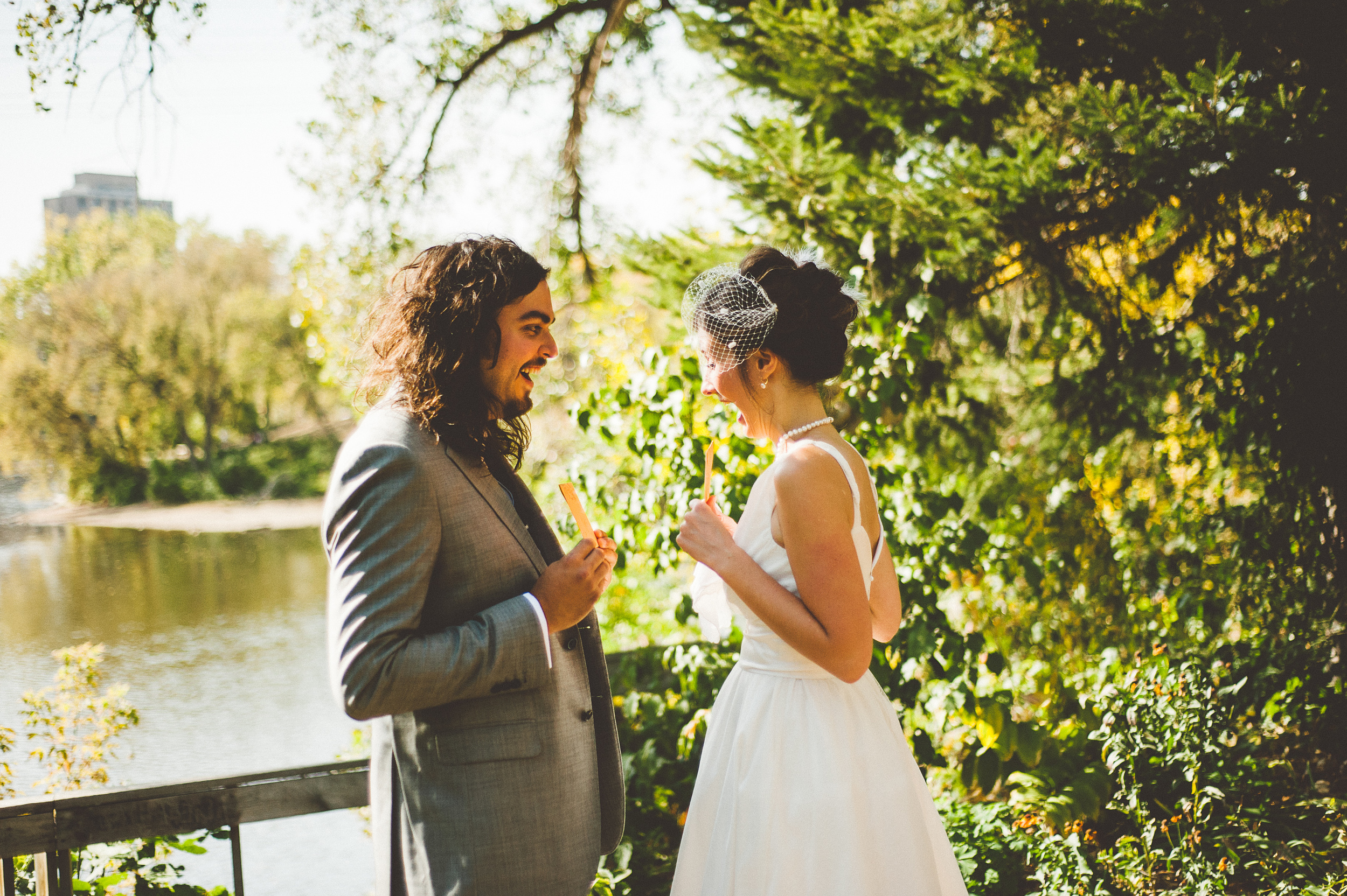 While planning a wedding can be a stressful and busy time, it was really our goal to make our day about our love and the marriage that we were beginning. One of the ways that we did this was through the time we had alone when we first saw each other. While there were friends watching nearby, cameras snapping shots in the shadows, and random strangers gawking in the park, we felt utterly alone and together as we saw each other and said hello for the first time that day. We had planned to exchange cards at that time and we burst out laughing when we realized that we had bought each other the exact same handmade card from one of our favorite local stores (I Like You, NE Minneapolis).
