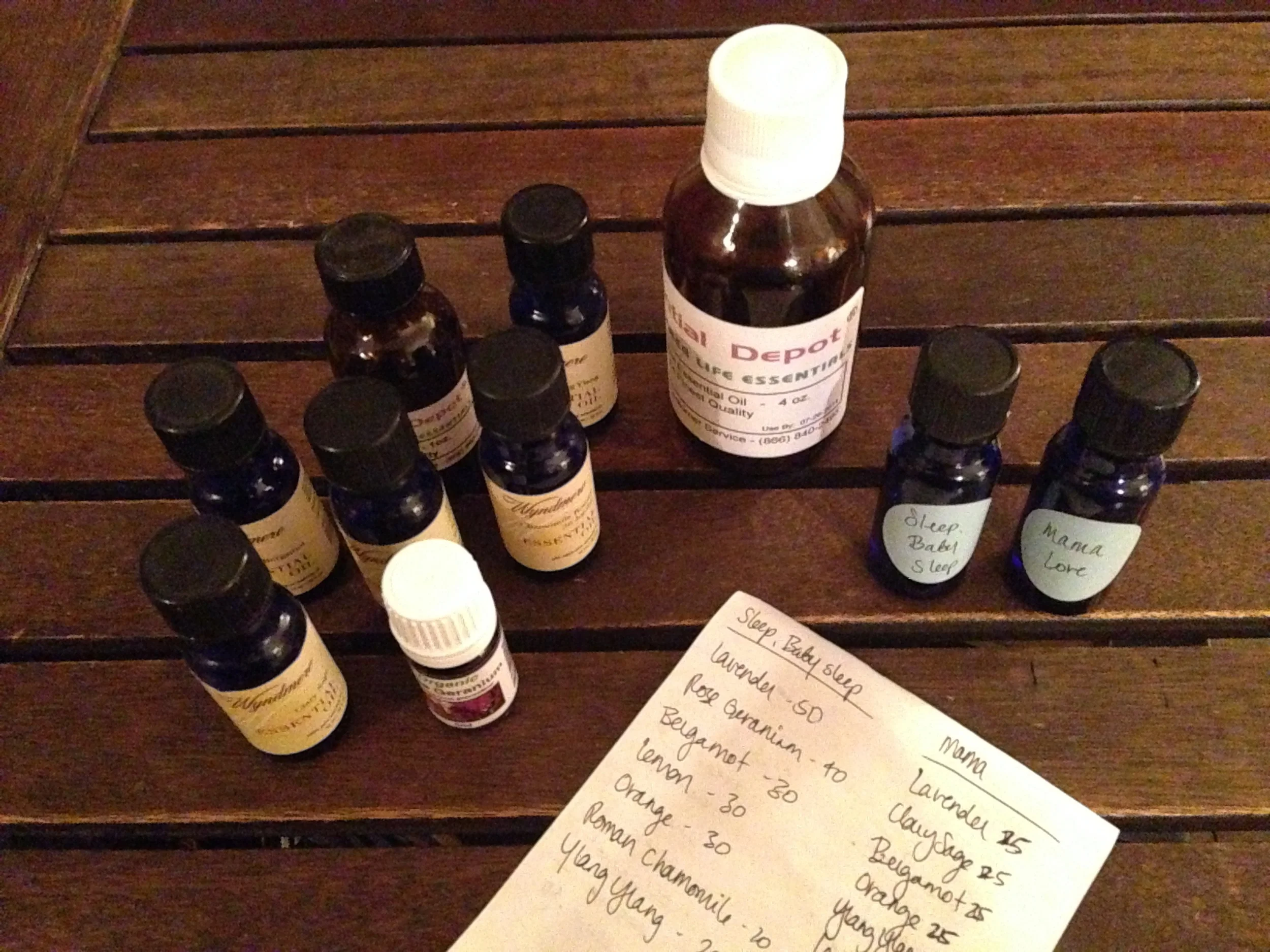 The first one I made I called Sleep, Baby Sleep.  It’s a calming blend that promotes sleep, calm, and peace for the new little one (as well as us).  I have a feeling that a few drops of that in the diffuser will likely become a regular bedtime ritual in our home.