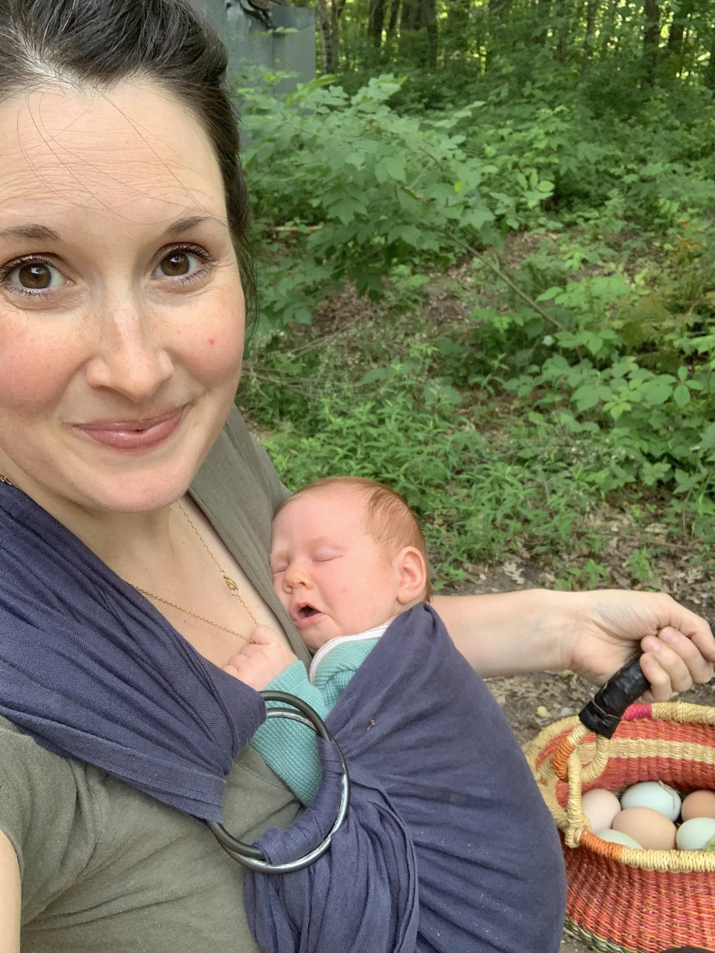 The garden is now giving back to us with radishes, peas, green onions, strawberries, and an array of greens coming into the kitchen weekly. It has been very hard to keep up with the weeding and succession planting of radishes, herbs, and greens. Ash has had a few naps in the garden while I’ve worked and I take any little opportunity I get to pull weeds – whether its during a nap, when Dan is home, or when I’m down at the barn feeding chickens and geese. I’m not getting the hours in the garden that I love and it’s not the prettiest place right now (as my pictures humbly show), but we are growing food and working the soil and that’s what matters most.